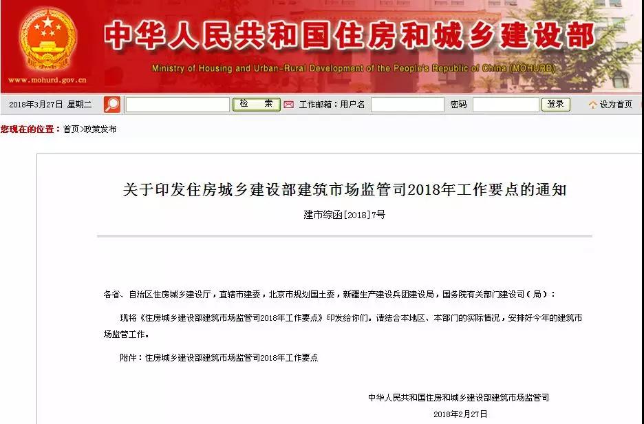 住房城鄉(xiāng)建設(shè)部建筑市場監(jiān)管司2018年工作要點
